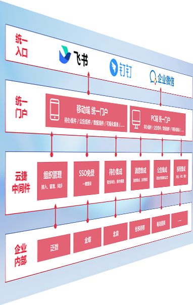 对协作平台提供支持服务,,支持企业应用与协作平台对接,,,包含组织同步、、、、消息集成、、、、待办集成等。。。支持目前主流的协作平台:钉钉、、、企微和飞书。。。